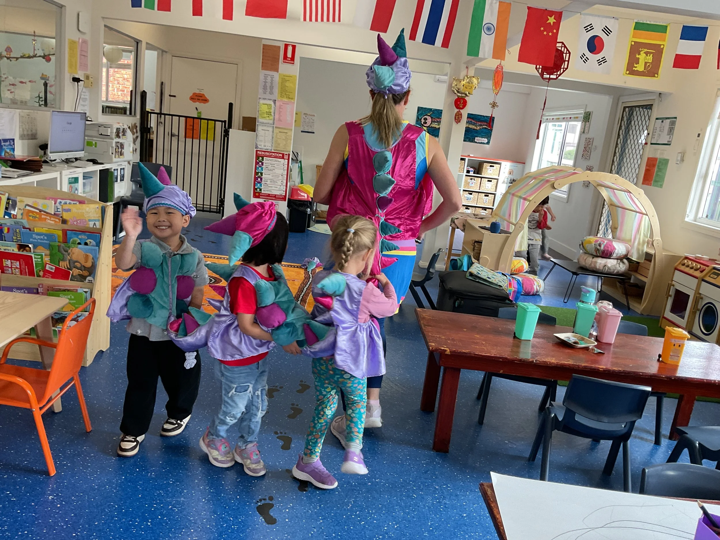 We value strong partnerships with families and the community. Each month, we host incursions and excursions that extend children’s learning and support school readiness. These include visits to local banks, schools, libraries, shops, and participation in community events such as food festivals and NAIDOC Week.